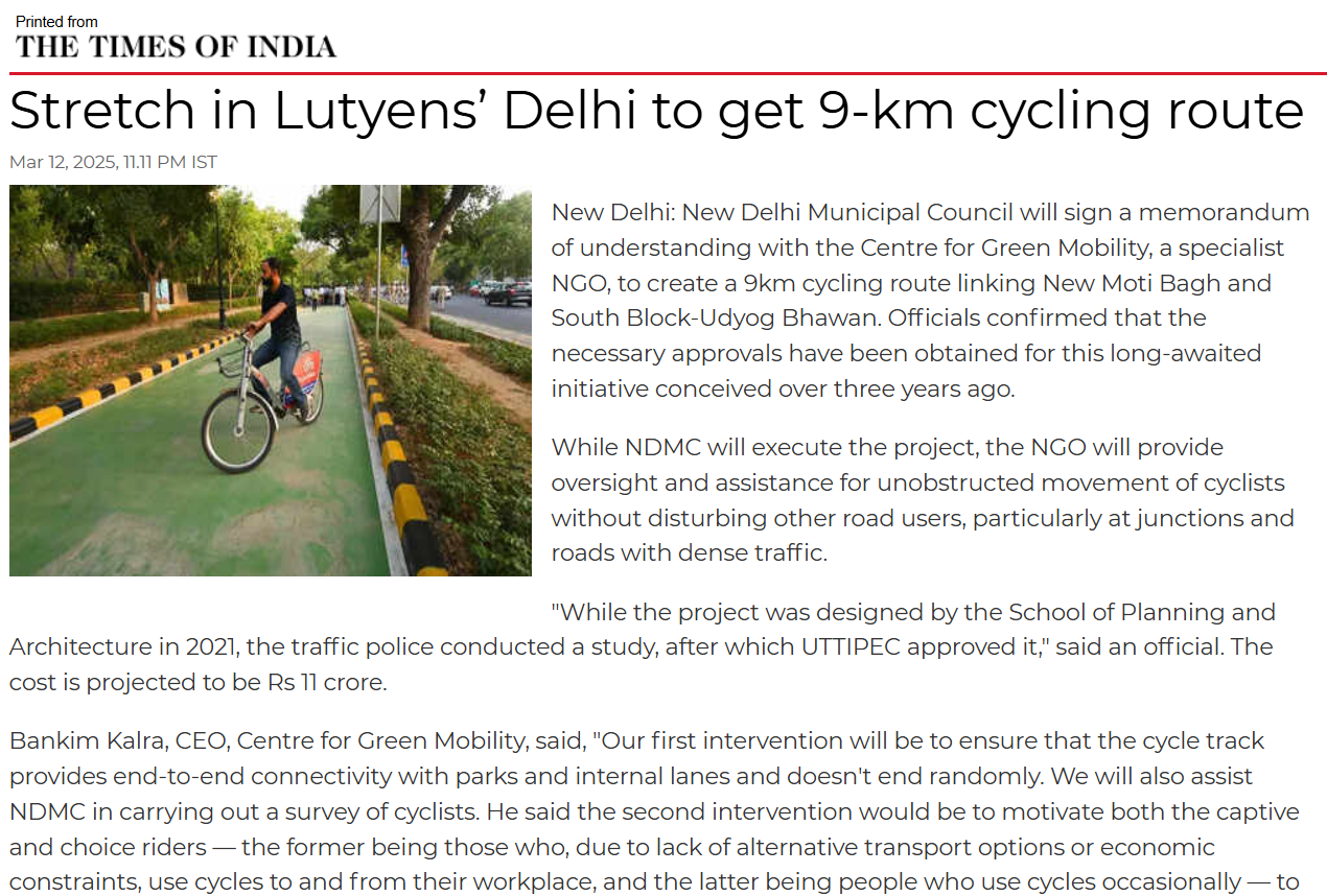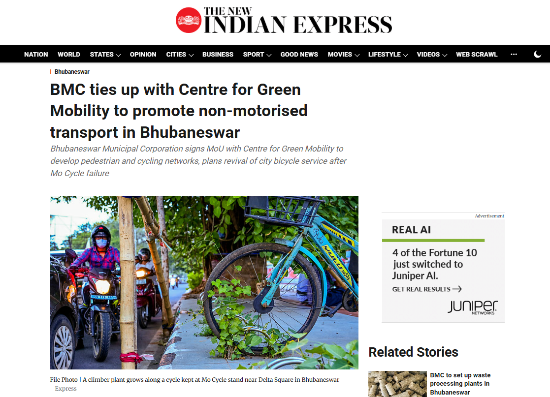 BMC ties up with Centre for Green Mobility to promote non-motorised transport in Bhubaneswar New Indian Express 2026 Read